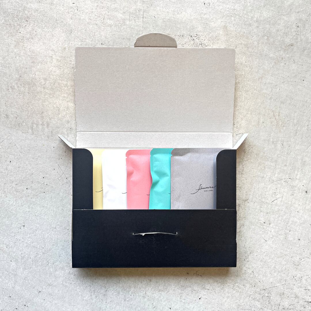 Flowereeのすべてのブレンドを各1パックずつ、合計5パックがギフトボックスに入ったセットになります。